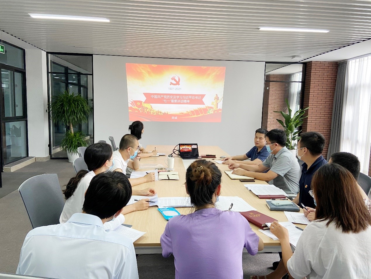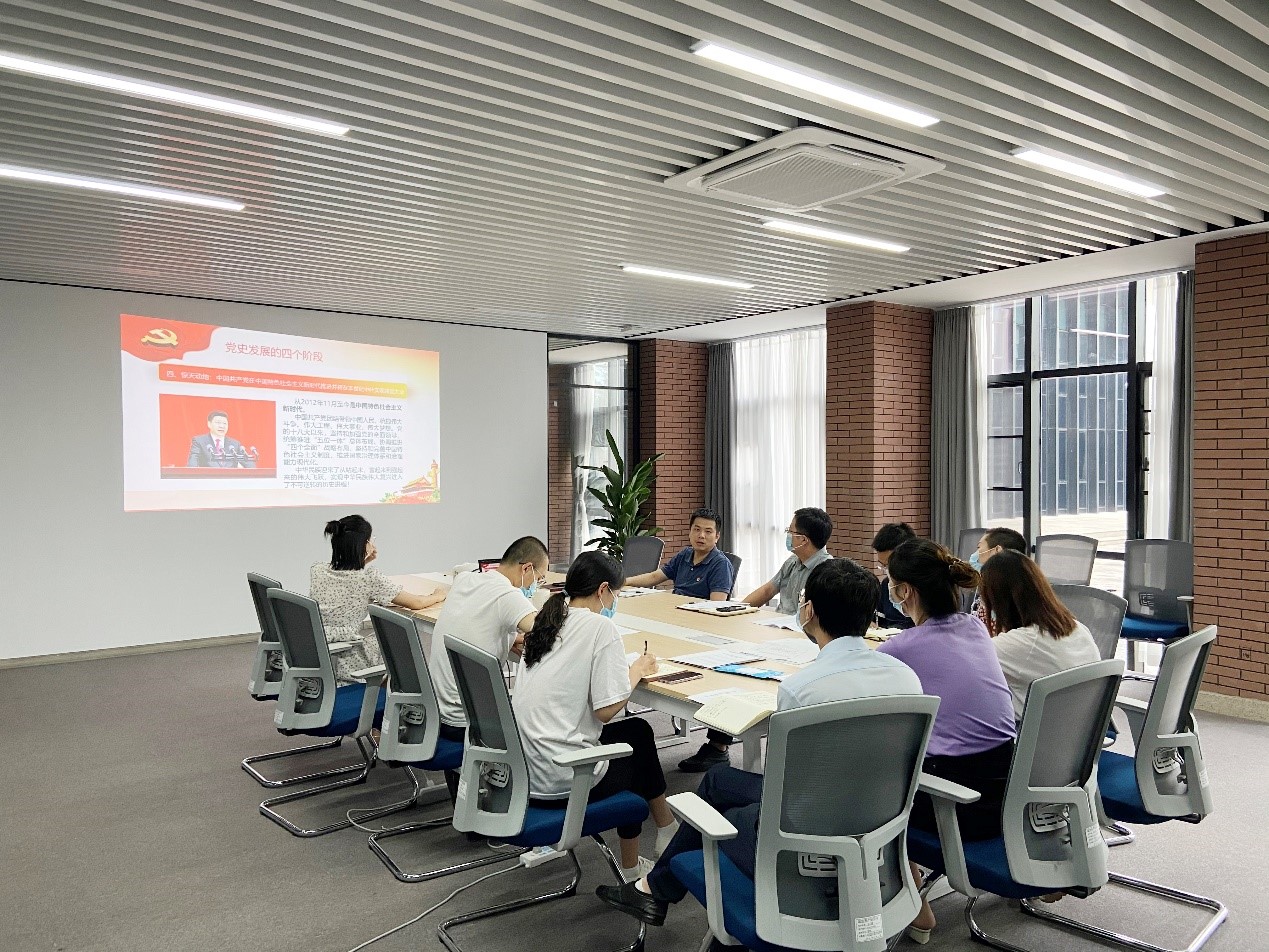 陈诚以习近平总书记七一重要讲话为纲,带领全体党员同志回顾了建党百年来的奋斗历程,结合中国共产党历史、新中国史、改革开放史、社会主义发展史等四史学习要求与心得。他着重介绍了党史发展的四个阶段,包括开天辟地的新民主主义革命时期、改天换地的社会主义革命和建设、翻天覆地的改革开放、惊天动地的中国特色社会主义新时代,并重点阐述了党的精神之源—伟大的建党精神,分享了他的学习感悟与经验。他说,党史是党走过的奋斗路,是过去的历史经验和宝贵实践,是“昨天的故事”;伟大的建党精神是共产党人接续奋斗的精神源泉。回望过往的奋斗路,眺望前方的奋进路,必须把党的历史学习好、总结好,把党的成功经验总结好、传承好,把党的精神传承好,发扬好。
