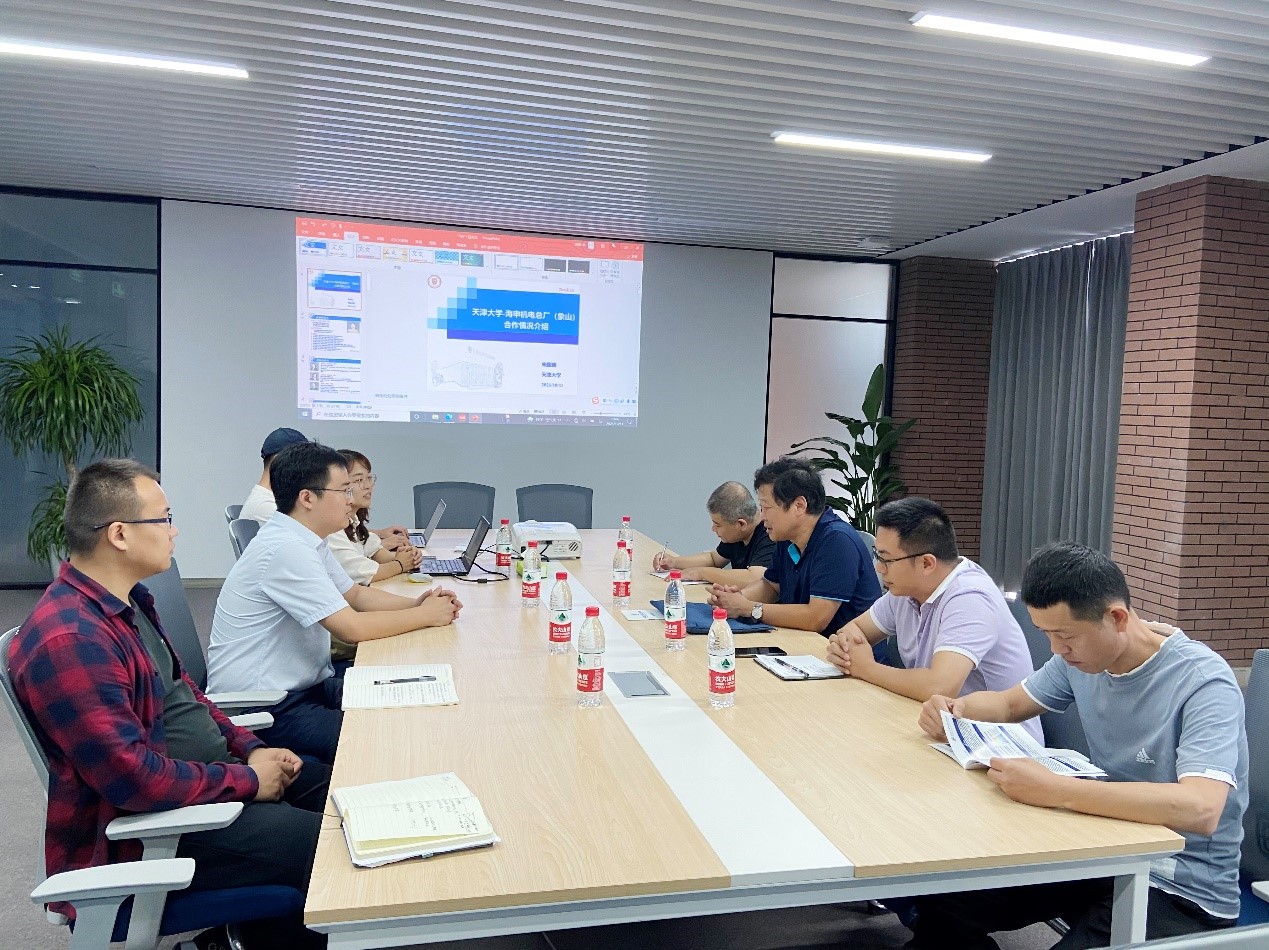 企业代表一行首先参观了研究院科研成果展厅,孙院长向来访嘉宾们介绍了天津大学校史历程、天津大学化工学科以及天津大学浙江研究院的发展情况,并详细介绍了研究院布局设立的四大研究中心和首批引进入驻的科研团队。在参观及座谈交流过程中,李振威总工介绍了海申机电总厂(象山)民品事业部的发展历程和业务范围,同时也表达了对天大化工学科的高度认可,在与过程装备健康诊断与评价中心团队技术合作中感受到了天大化工的实力。
