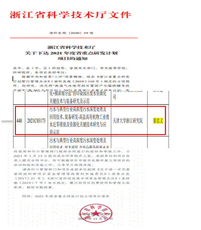 昨日,从浙江省科技厅处获悉,我院姜忠义教授团队牵头申报的2021年度浙江省重点研发计划项目进入公示阶段。